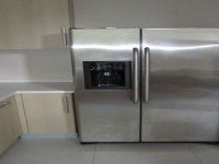 Die Kueche kann durch grosse Schiebetueren zu einem Teil des Essbereichs werden. Dadurch das dieses Haus auch in den einzelnen Etagen verschiedene Ebenen hat, entstehen gemuetliche Wohnbereiche in die man sich gut zurueckziehen kann.